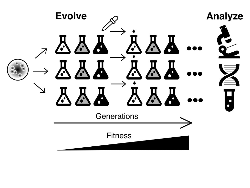 By allowing bacteria to adapt to a new environment in the laboratory we can study evolution in real time and beneficial mutations can be identified by DNA sequencing. Bacteria can be maintained at large population sizes and have short generation times so evolution can be studied over many generations. A fossil-record can be maintained in a non-evolving state in the freezer allowing fitness comparisons between evolved and ancestral strains. Genetic tools are available for reconstructing and combining mutations to determine their phenotypic effects.